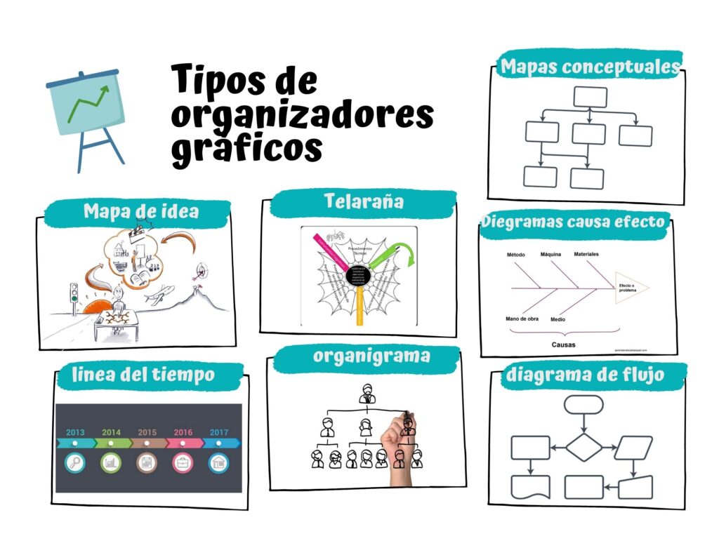 Te dejo algunas infografías útiles con diversos tipos de organizadores gráficos que puedes enseñar a tus estudiantes: