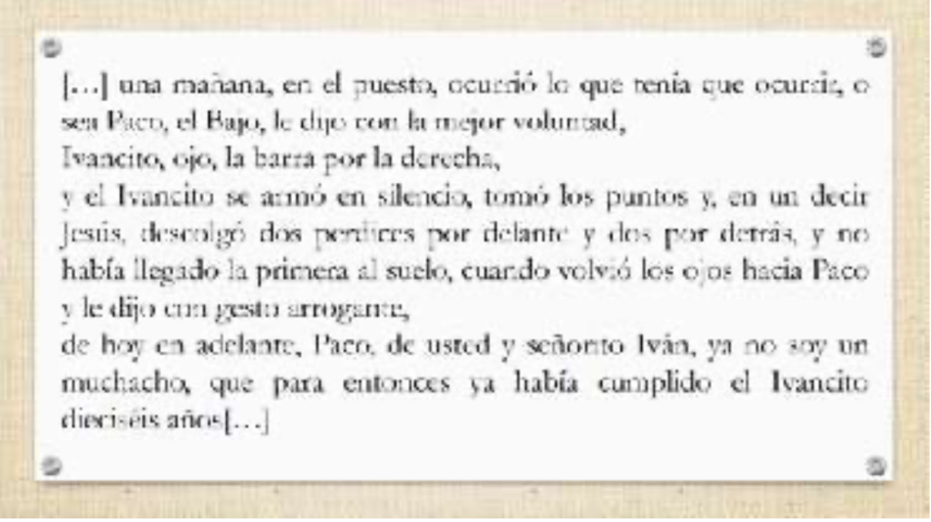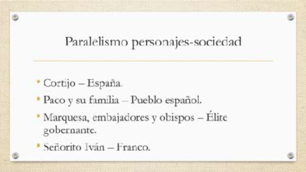 Después, hemos trabajado fragmentos y escenas de la película en clase concretos, como los que muestran la relación entre Paco y el Señorito Iván, los que evidencian la humillación constante o los que muestran el trato que la sociedad da a Azarías. Además, hemos analizado y comparado esta escenas cinematográficas que comentaba con fragmentos textuales de la novela: