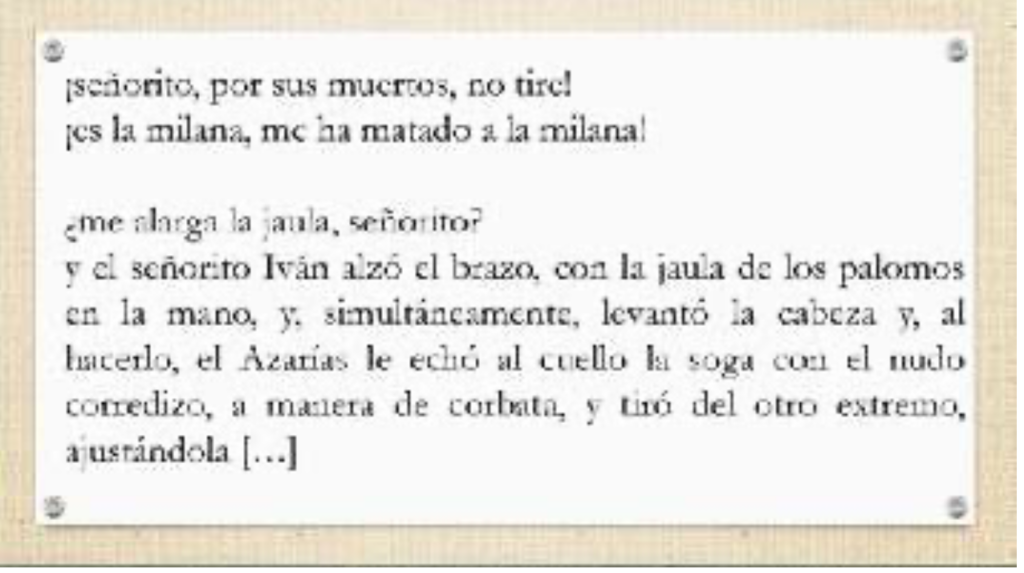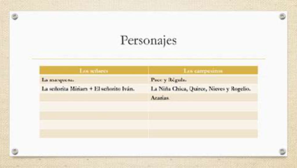 Tras estas reflexiones, hemos profundizado en la humanización vs. la deshumanización, para lo cual hemos plantado una actividad multinivel donde los estudiantes, por grupos, analizan un personaje (Paco, Régula, Azarías, el Señorito Iván…). Para ello, les he pedido que piensen en cómo los presenta el narrador, qué rasgos de empatía generan, quién o quiénes son cosificados y tratados como objetos y quiénes no, etc. De este modo, han empezado a detectar el lenguaje deshumanizado, la animalización, la ironía narrativa o la crítica implícita.
